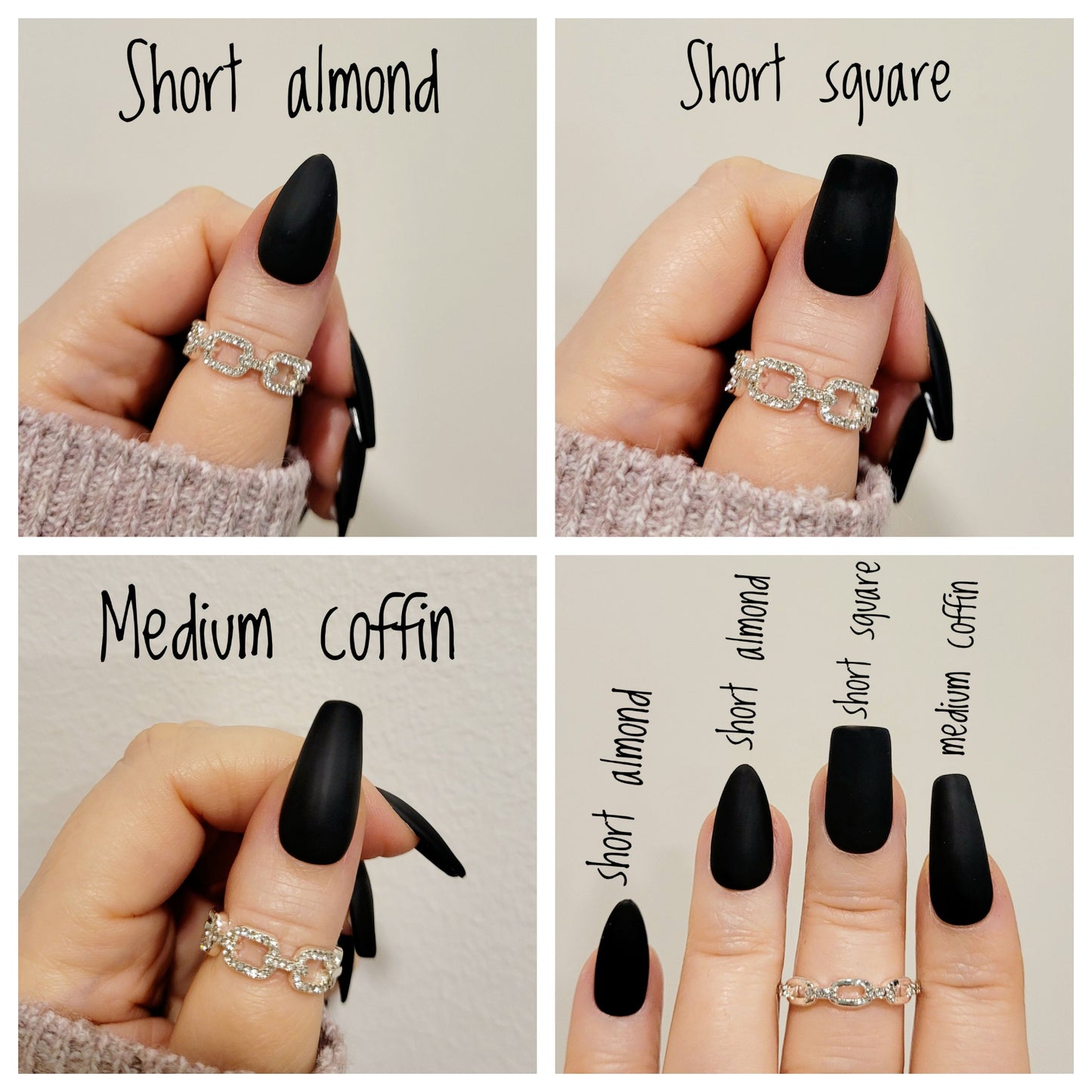 Saatavilla 3 mallia: Short Almond, Short Square ja Medium Coffin.
