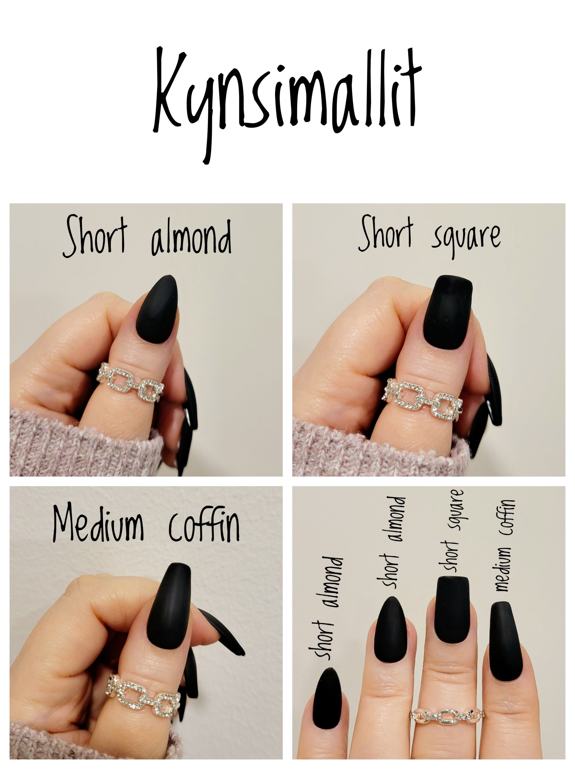 Saatavilla 3 mallia: Short Almond, Short Square ja Medium Coffin.