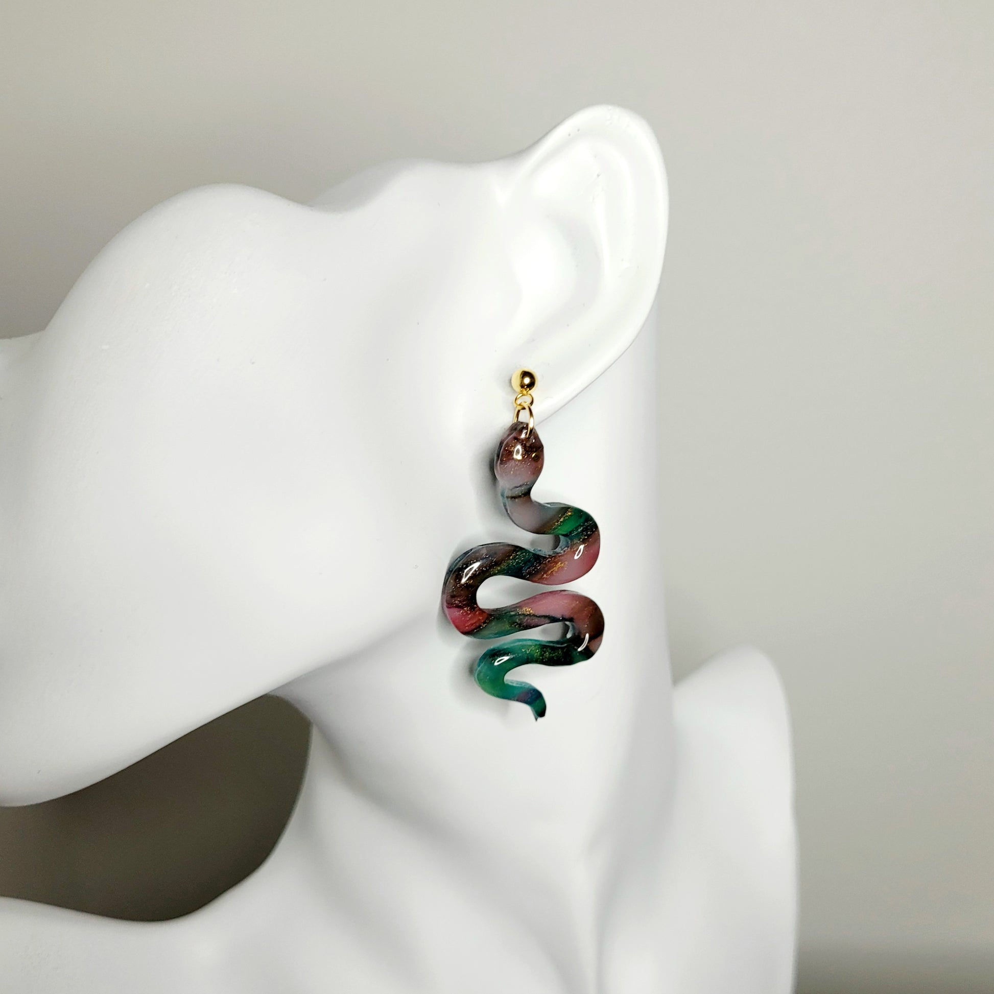 Moniväriset Snake korvakorut ovat tehty todella kevyestä polymeerimassasta ja metalliosat ovat kullattua ruostumatonta terästä/kirurgin terästä, eli ovat yleensä hyvin siedettyjä myös allergioista kärsivillä hehenkilöillä.