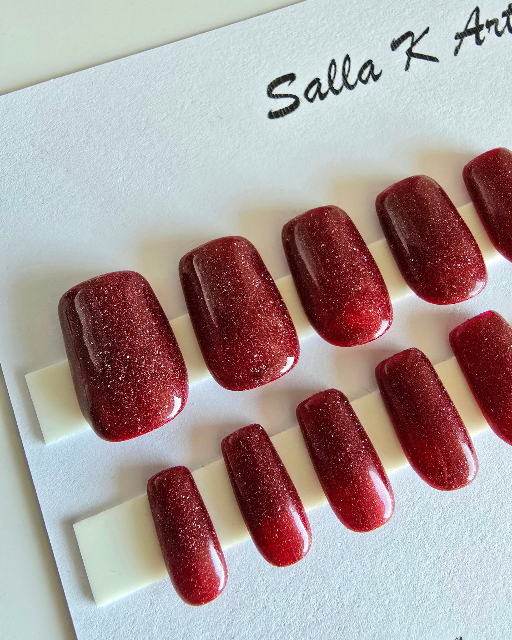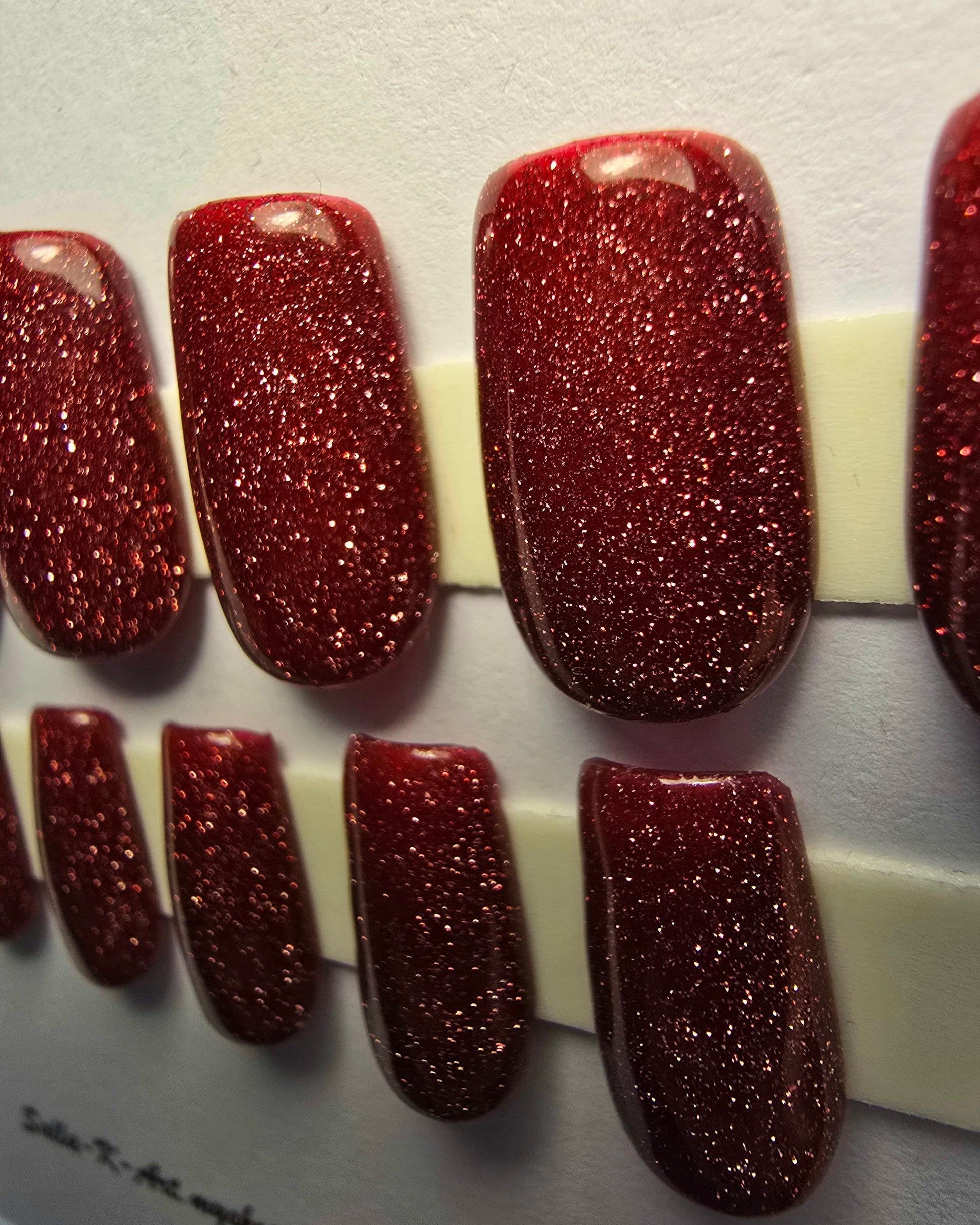 Käsinmaalatut geelistä tehdyt laadukkaat press-on kynnet, kiiltävä pinta.