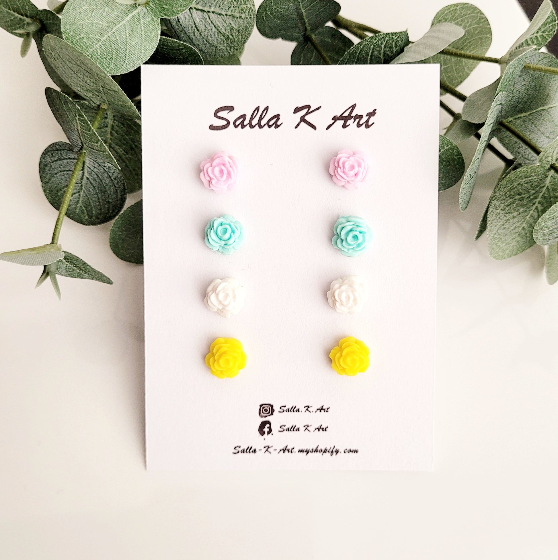Setti sisältää 4 eriväristä ruusukorvakorua: